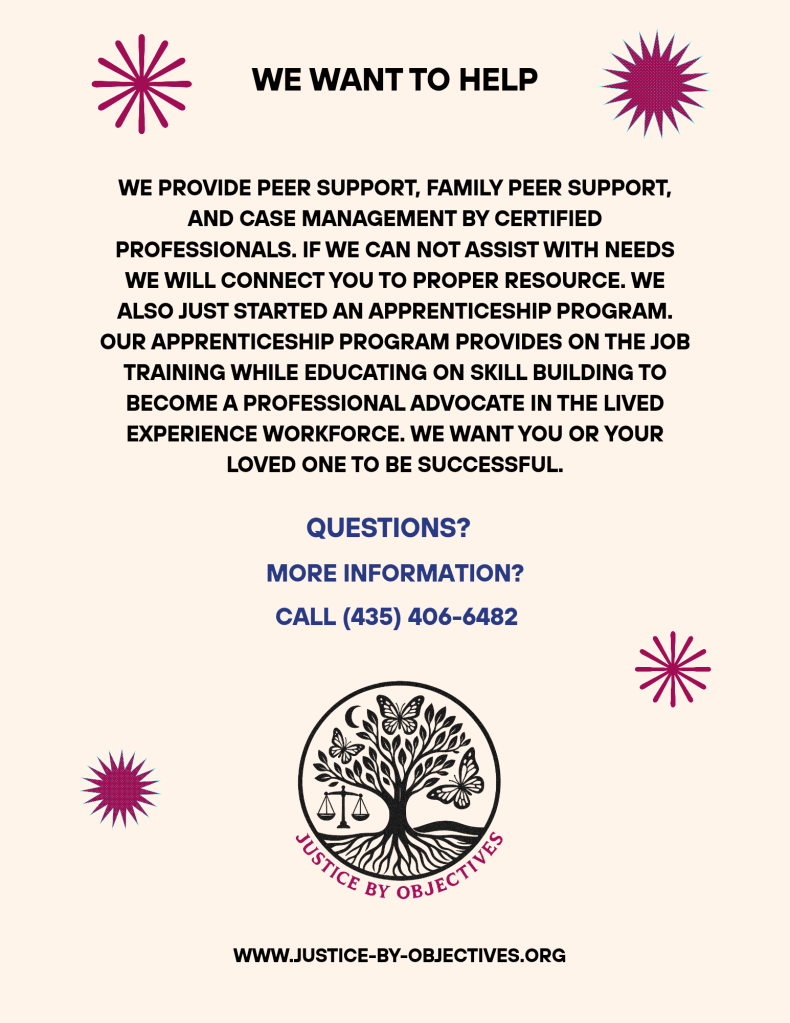 Justice By Objectives (JBO) is a Utah-based 501(c)(3) nonprofit organization committed to supporting individuals and families impacted by the criminal justice system, with a focus on those affected by incarceration.