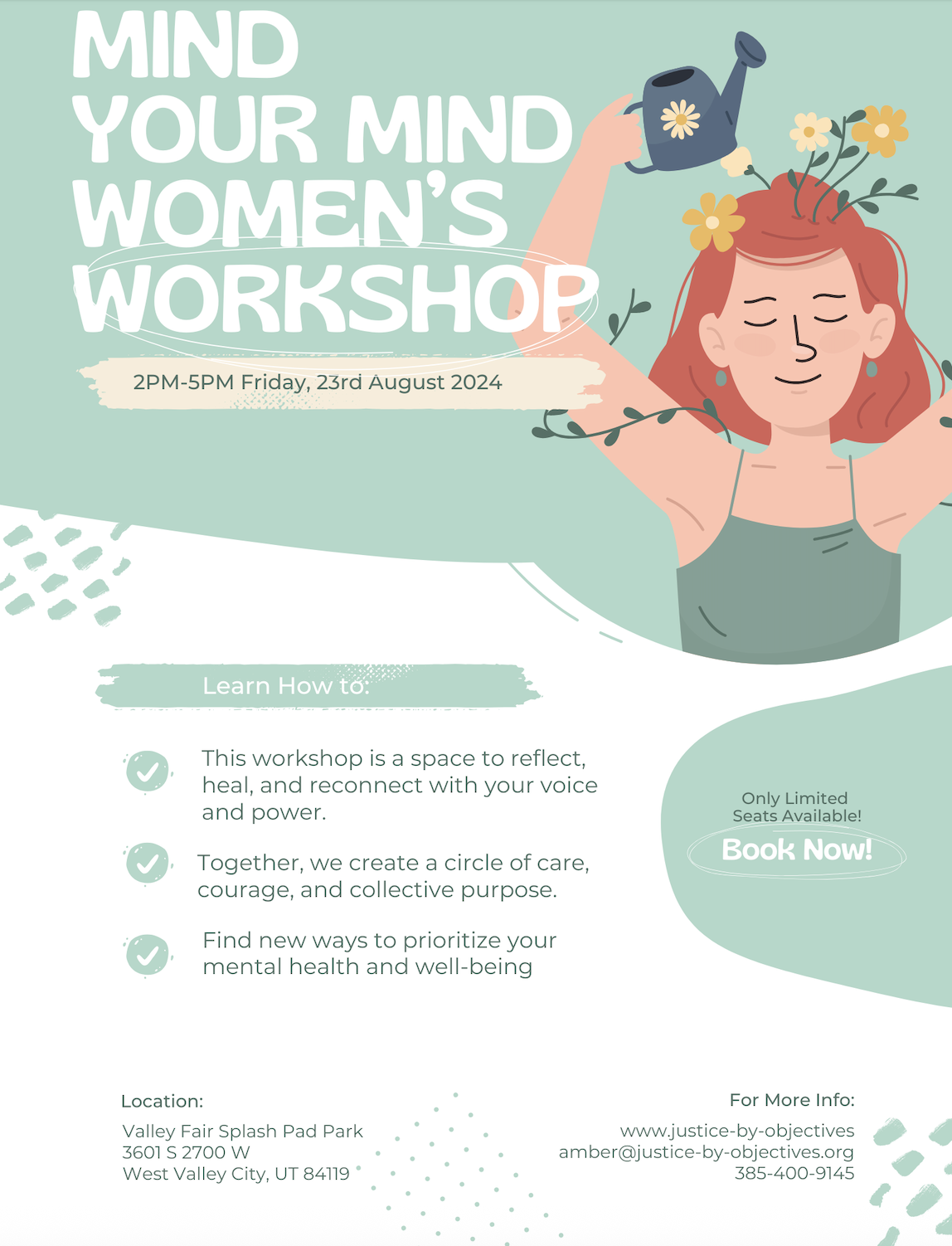 Join us August 23 for a women’s healing workshop. This workshop is a space to reflect, heal, and reconnect with your voice and power. Together, we create a circle of care, courage, and collective purpose. Find new ways to prioritize your mental health and well being. For more information reach out to Amber.